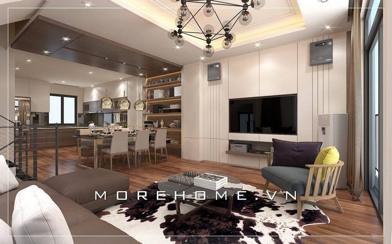 Thiết kế nội thất phòng khách liền phòng ăn phong cách hiện đại sang trọng, tiện nghi cho nhà biệt thự