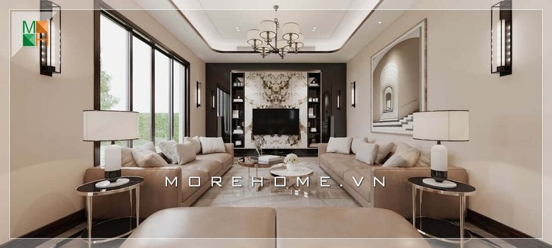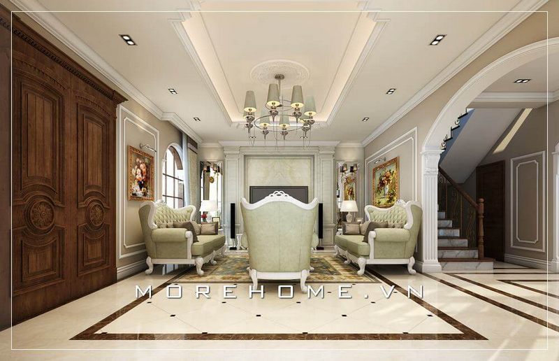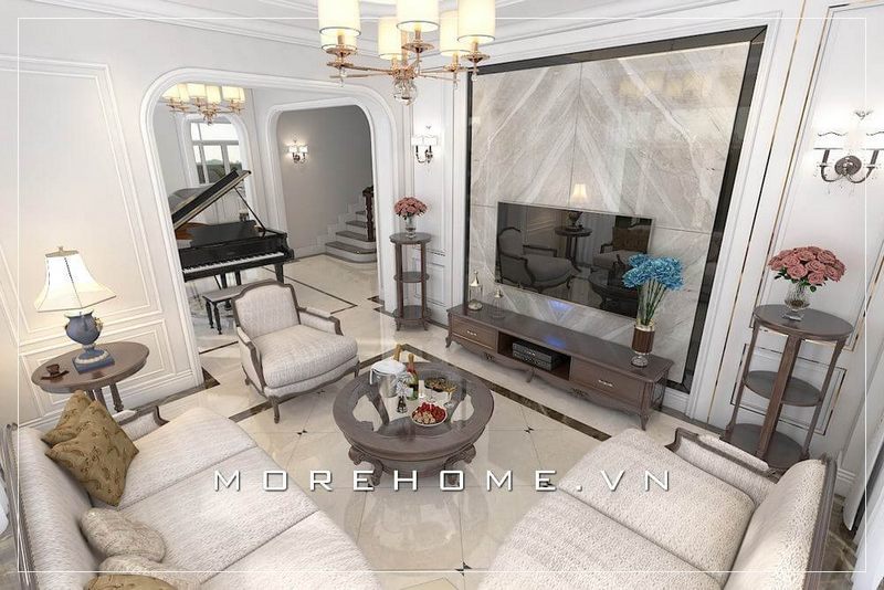Ấn tượng với mẫu thiết kế phòng khách biệt thự mang phong cách tân cổ điển đẹp, đẳng cấp và sang trọng.