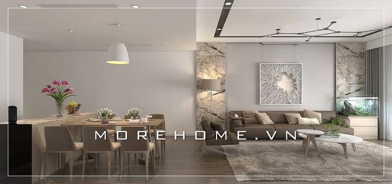 Không gian sống như được bừng sáng nhờ vào trang trí phòng khách chung cư hiện đại thông thoáng với ánh sáng ngập tràn trong phòng.