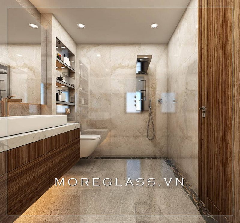 Sử dụng vách kính phòng tắm đứng sang trọng cho nhà vệ sinh biệt thự