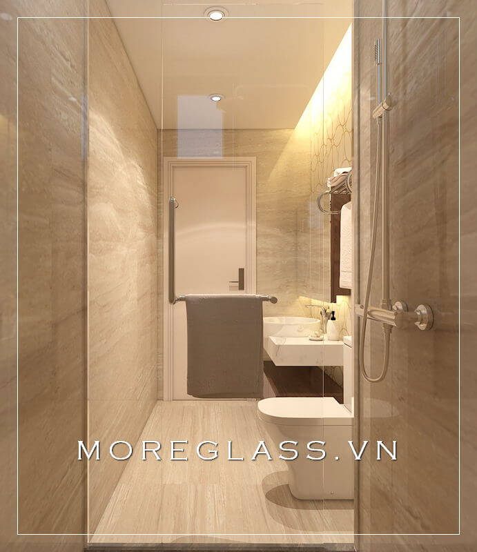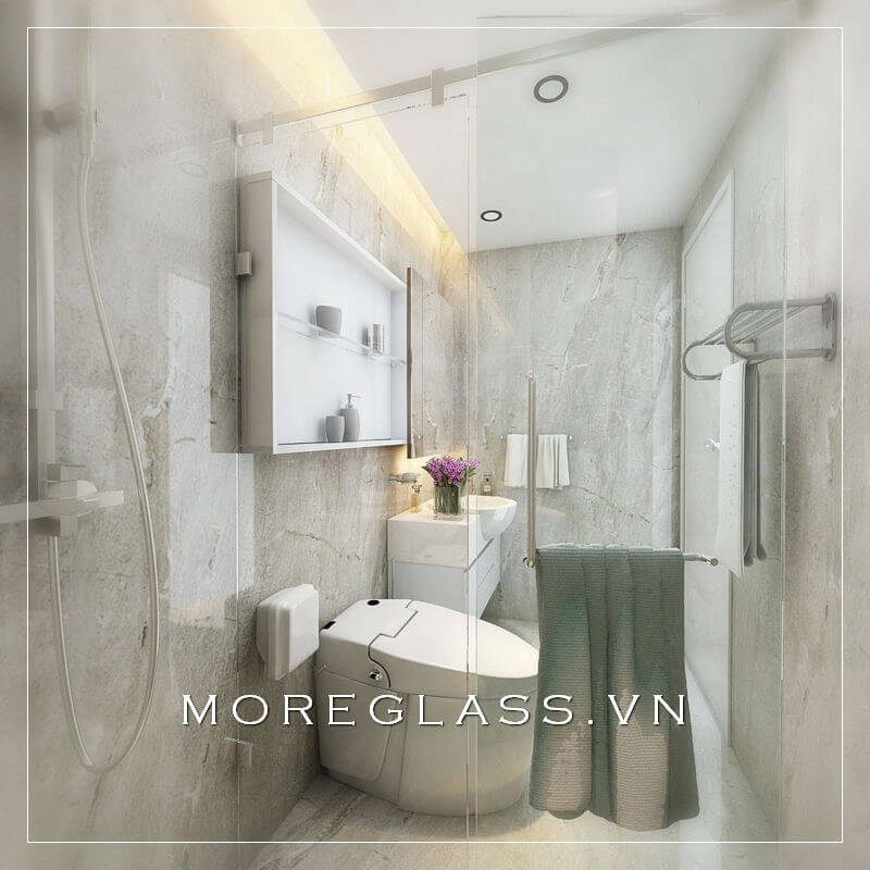 Vách kính cường lực được ưa chuộng và sử dụng rộng rãi trong thiết kế phòng tắm và nhà vệ sinh nhỏ đẹp.