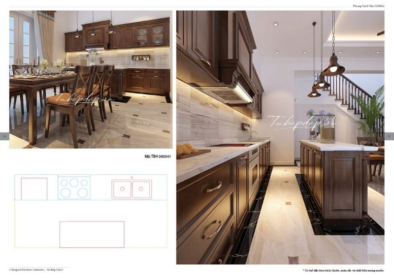 Mỗi chi tiết của thiết kế nội thất phòng bếp của biệt thự, nhà phố đều được tính toán kỹ lưỡng. Gỗ tự nhiên là chất liệu hoàn hảo để sử dụng trong việc làm tủ bếp kiểu tân cổ điển.